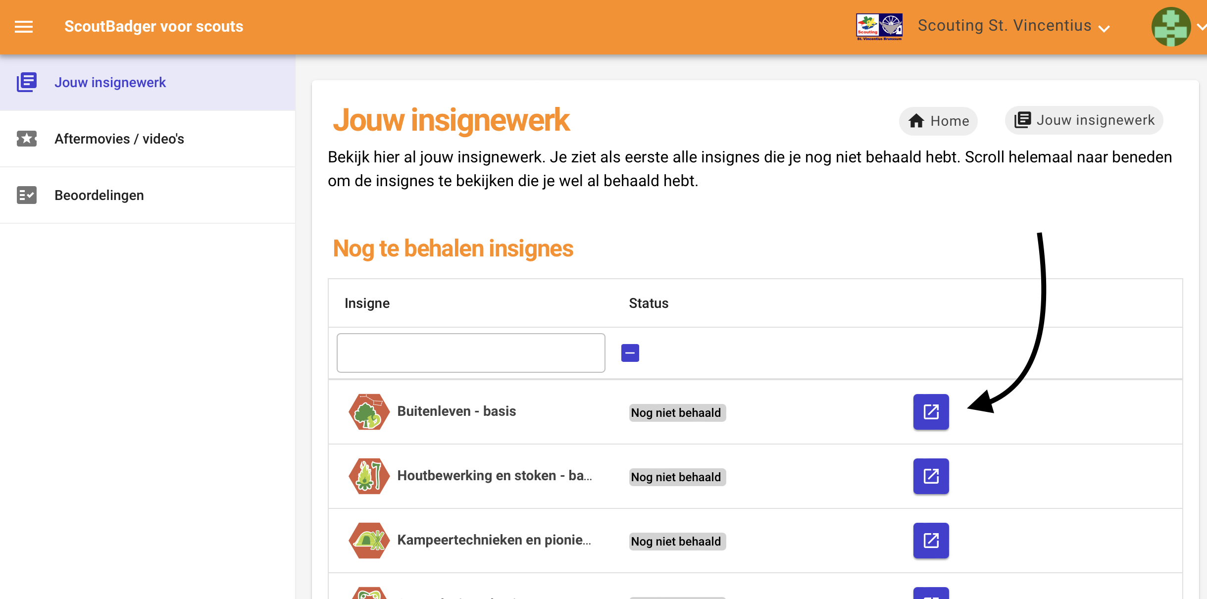 2. Klik aan de linkerkant van het scherm op: "Jouw insignewerk"